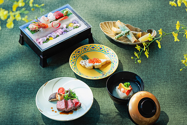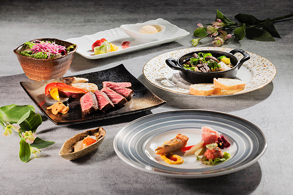 石川県の優れた農林水産物「百万石の極み」より能登牛と加賀野菜をご用意。石川の山海の恵みを堪能できるコース。ディナーには、ホタテと「のと115」のアヒージョもお楽しみください。(全7品)