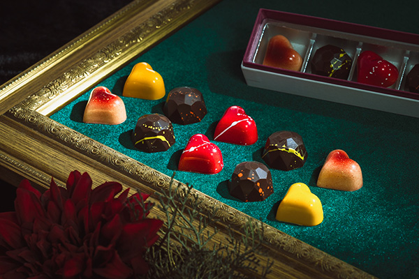 石川県産ブランド 農林水産物「百万石の極み」のルビーロマン、加賀しずく、能登大納言小豆、能登志賀ころ柿、五郎島金時を使い、パティシエが 可愛いボンボンショコラ に仕上げました。 バレンタイン期間限定販売です。