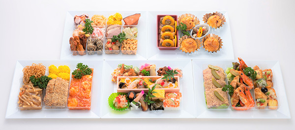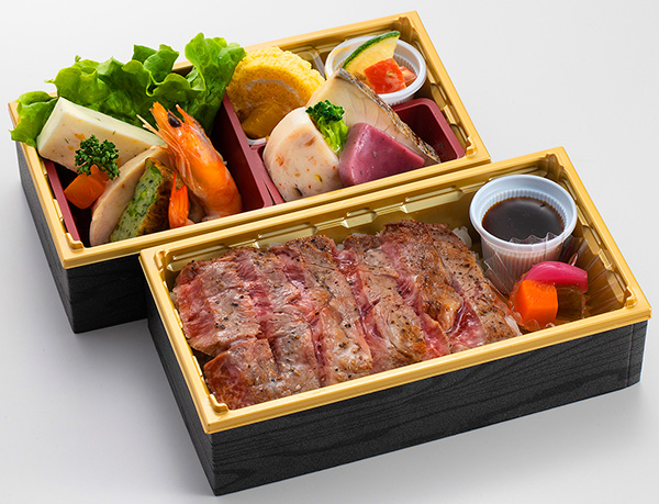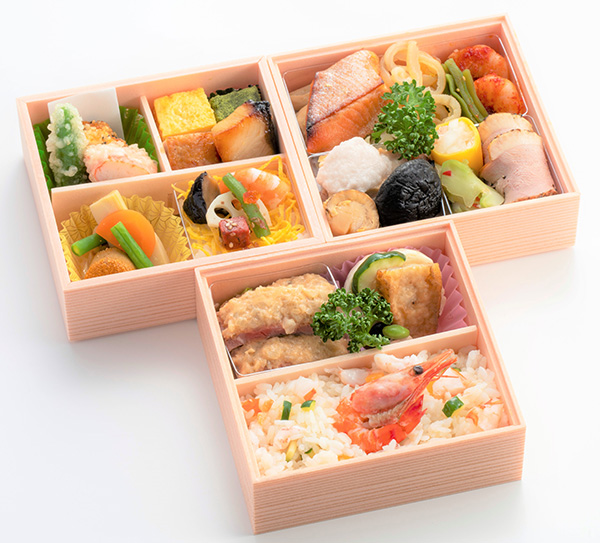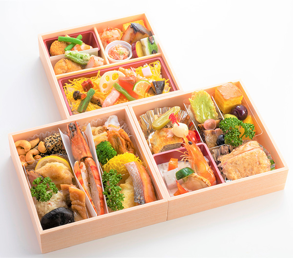 ①豪華懐石三段重(和・洋・中)②能登牛のステーキ二段重③フードピア三段重(和・洋・中)④国産牛のステーキ御膳