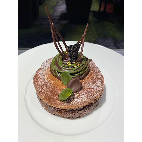 抹茶のテリーヌとチョコのスフレで仕上げた、ダイニング「蔵」限定での販売スイーツをお楽しみください。