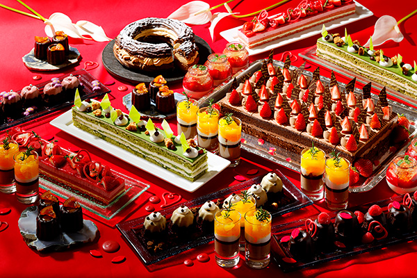 山元チーフパティシエがバレンタインに合わせてチョコレートをふんだんに使用したスイーツと定番の人気スイーツや軽食(スープ、サラダなど)をご準備いたします。