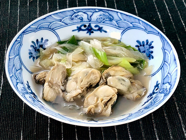 この牡蠣と寒さが厳しくなる冬に甘くおいしくなる長ネギを合わせて「能登牡蠣のいしる煮」を作ります。
